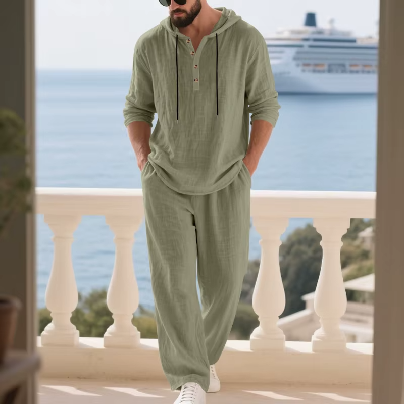 لبسة وحدة تكملك الطلعة… هودي بغطاء للرأس + بنطلون متناسق (قصّة فضفاضة/كاجوال).